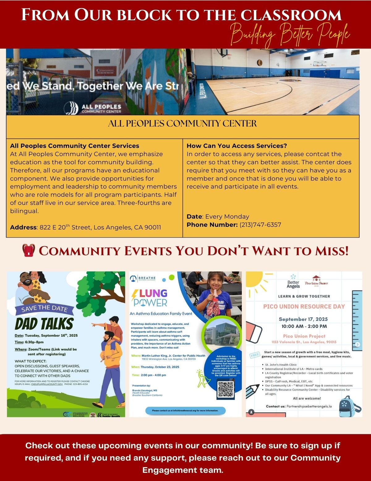 We hope that you join us during this month for all of our upcoming events! In this newsletter, you will find resources in the community, upcoming events and lots of other information. If you need support with accessing any of the flyer information please feel free to reach out.